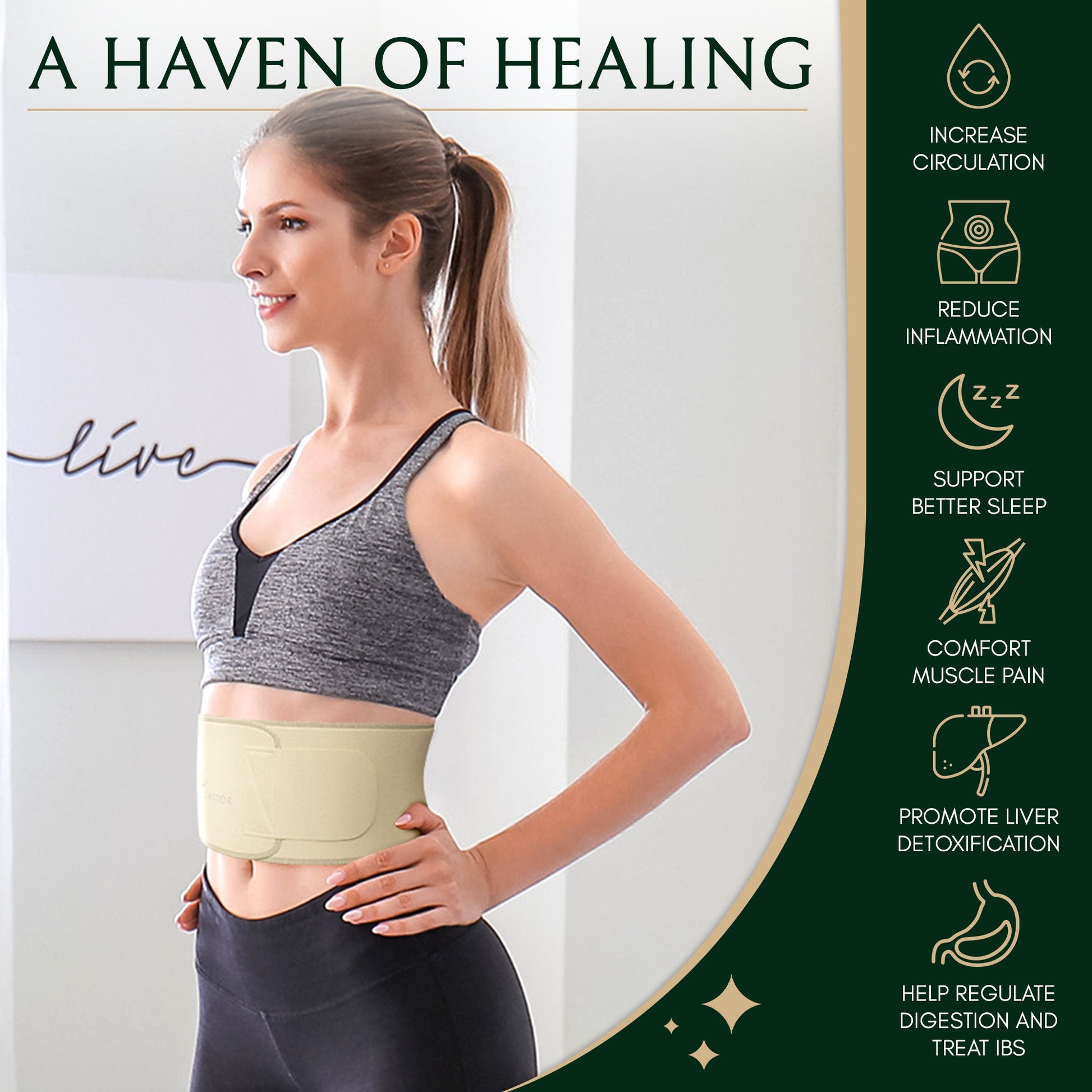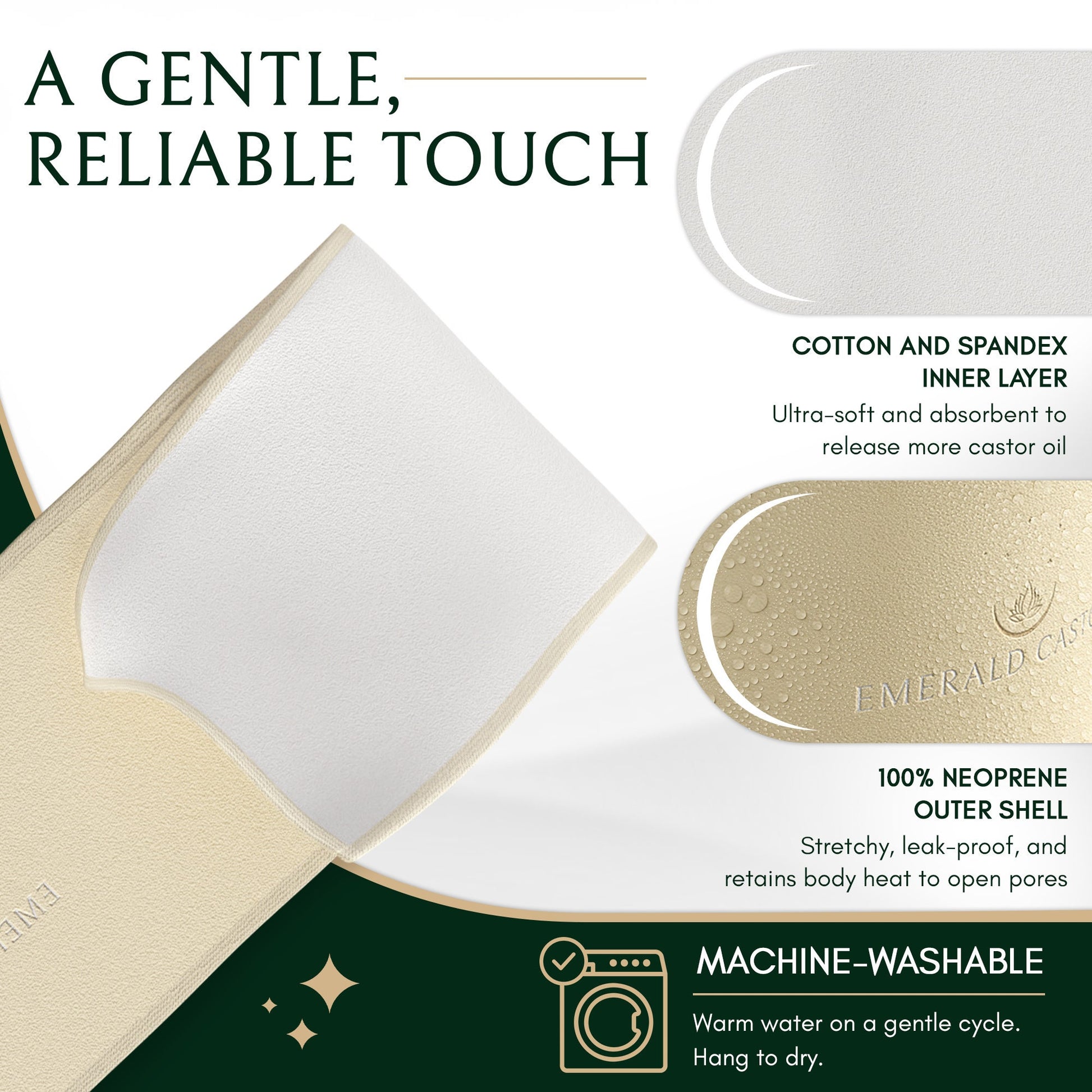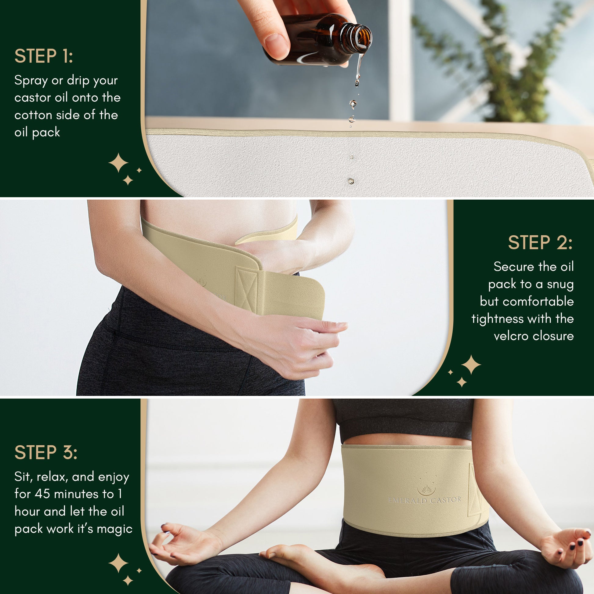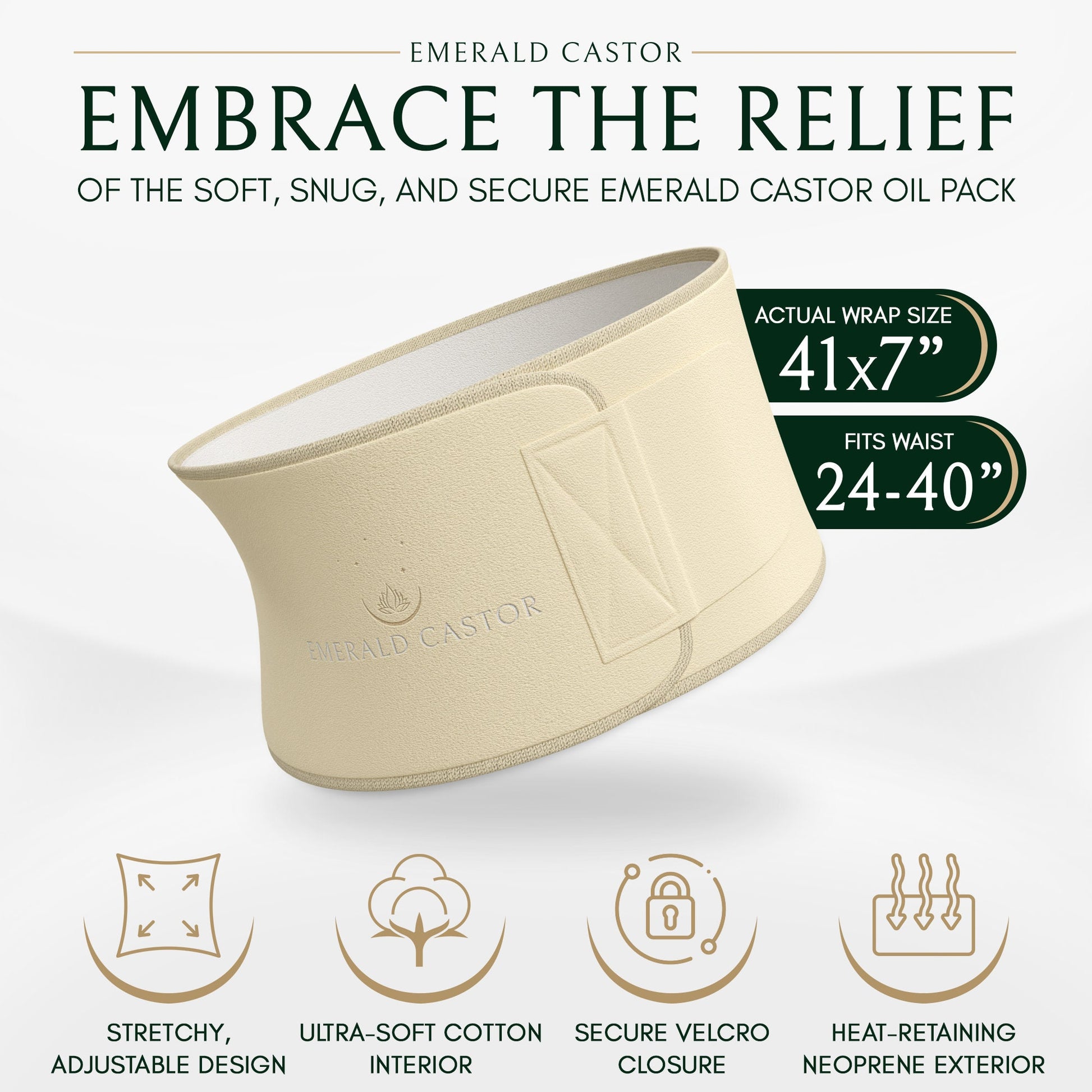 EXPERIENCE THE SOOTHING POWER of Emerald Castor Oil Packs. With an ultra-soft organic cotton interior that provides a gentle touch to your abdomen with every use
